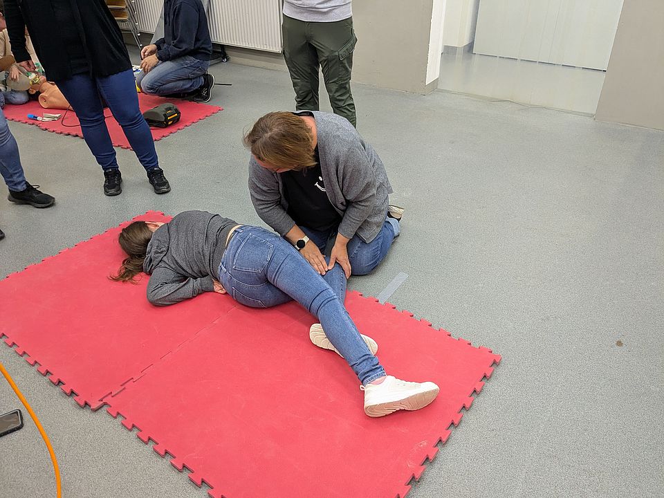 Parallel dazu wiederholten wir auch noch ein paar Basismaßnahmen, u.a. die stabile Seitenlage und den Bodycheck.
